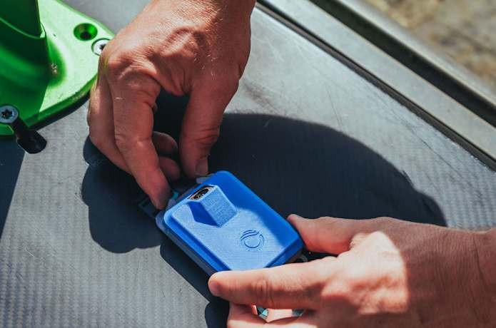 「SmartFoil」は、ボードに装着するカメラと専用アプリをセットで使用する。