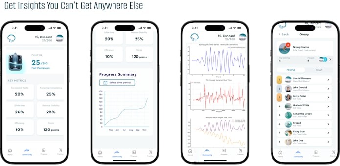 「SmartFoil」は、カメラとモーションセンサーを搭載した、フォイルやSUPなど水上スポーツ用のAIコーチデバイス。広い画角でライディングを録画し、AI解析でフォーム改善などのアドバイスをしてくれるという。