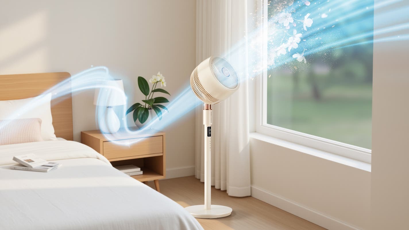 「F902promax」は、扇風機とイオン発生器を融合させた3Dサーキュレーター。花粉対策モードや抗菌ファン、38段階の風量調整など、パワフルながらも静かに空気を循環してくれる。