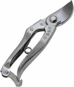 まず最初に揃えるべき万能バサミ。片手で扱え、生木をきれいに切るのが得意。