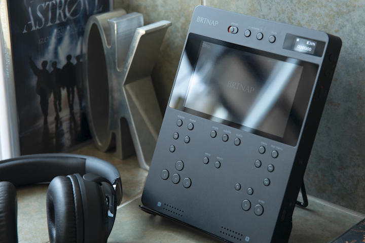 「BRTNAP ポータブルDVDプレイヤー」は、折りたたまずコンパクトに持ち運べる形を採用。5インチの液晶画面を内蔵し、本体のみでコードレスで視聴可能だ。