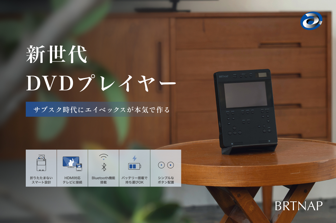 「BRTNAP ポータブルDVDプレイヤー」は、エイベックス製の充電式DVD・CDプレイヤー。液晶ディスプレイを内蔵し、本体のみで視聴が可能。外部モニターにも対応し、場所を選ばずDVDやCDが楽しめる。