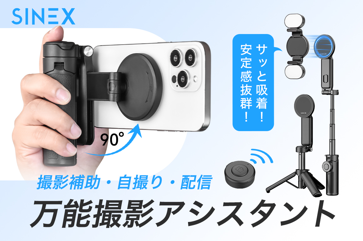 「SINEX Z2」は、スマホ撮影を様々なシチュエーションでアシストする多機能スタンド。重さ174g・長さ11.5cmのコンパクトな設計で、持ち運びやすいのも特徴だ。