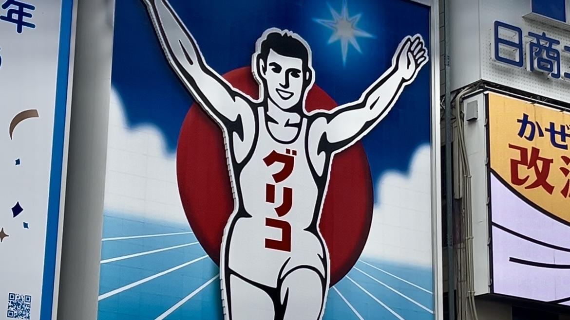 グリコサインは高さ約20m、幅約10mでLEDで点灯