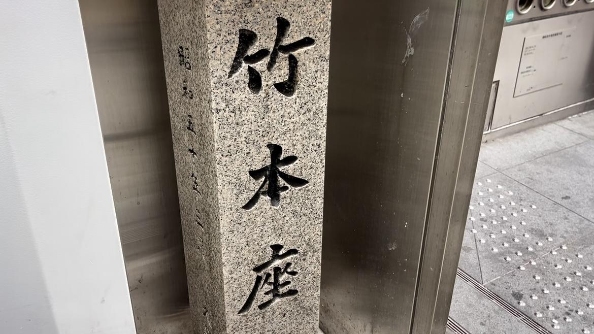 商店街の入口に位置するビルの脇には、竹本座跡の碑がひっそりと立つ。1684年(貞亨元年)に、初代竹本義太夫が人形浄瑠璃の小屋としてこの地に創設。劇作家の近松門左衛門を座付作者とし、氏の作品の多くが初演されるなど、人形浄瑠璃全盛期の礎となった劇場だった。