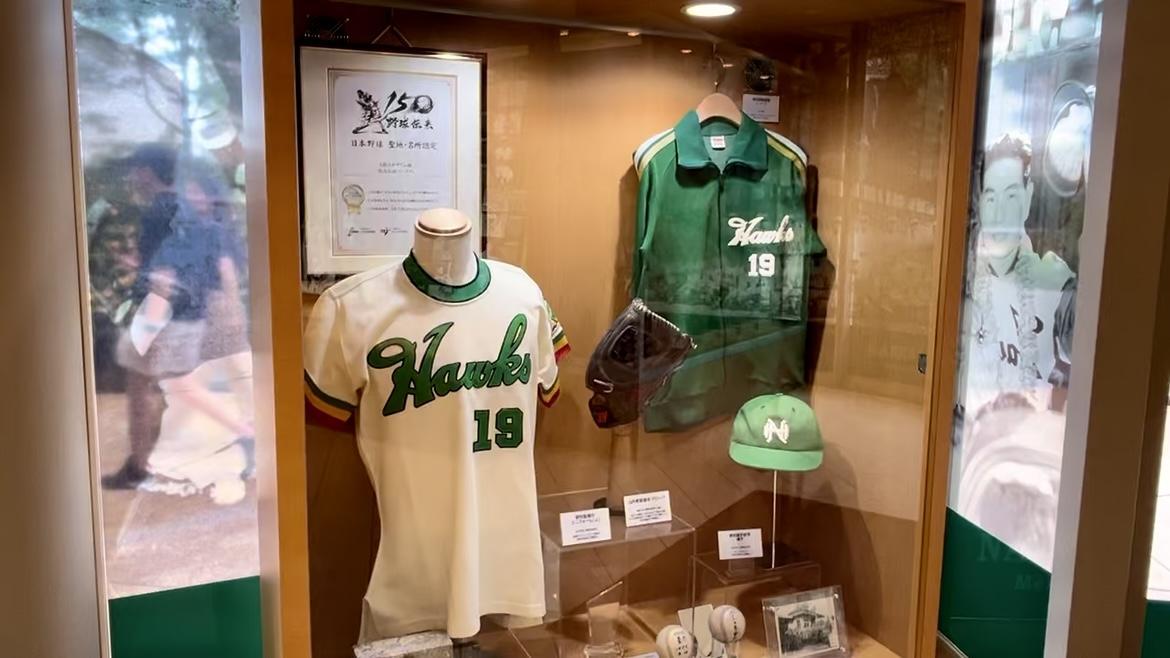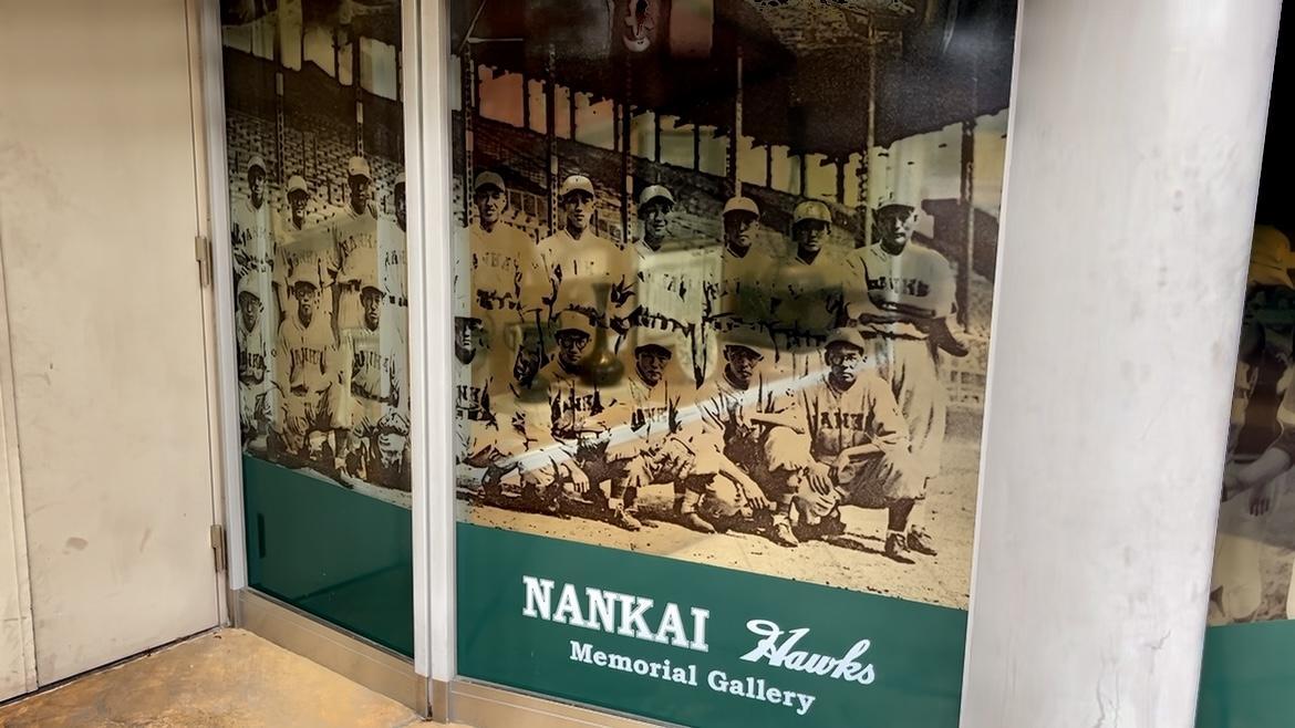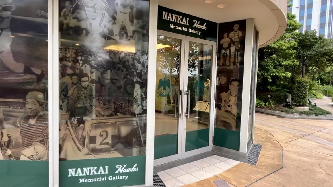 9階の一角には南海ホークスメモリアルギャラリーが設けられ、往時の選手の紹介や球場の写真など、50年に及ぶ球団史にまつわる様々な記録を展示。野村克也や鶴岡一人をはじめとする、名選手が使ったユニフォームなどの道具のほか、ペナントにトロフィーといった日本シリーズ優勝時の記念品も。オールドファンにとって、思い出深い品々があふれるコーナーである。