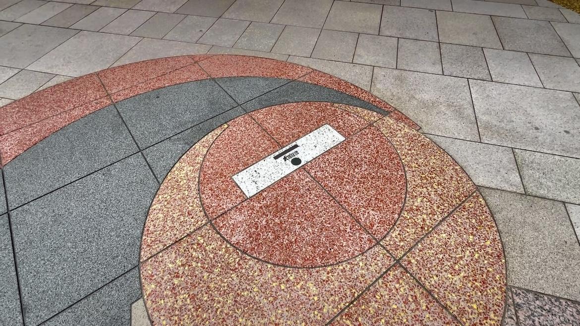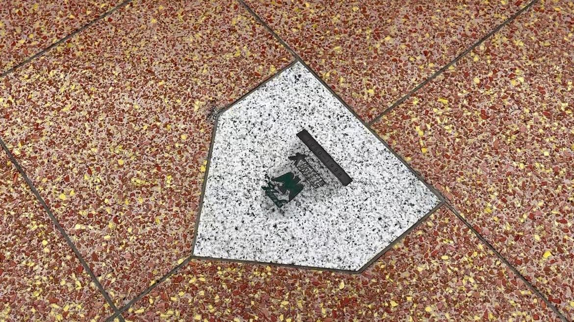ピッチャープレートのモニュメント。周囲はマウンド風の装飾
