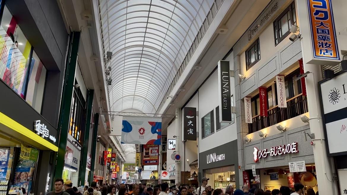 戎橋筋商店街。戎橋を経て心斎橋筋商店街へ続く
