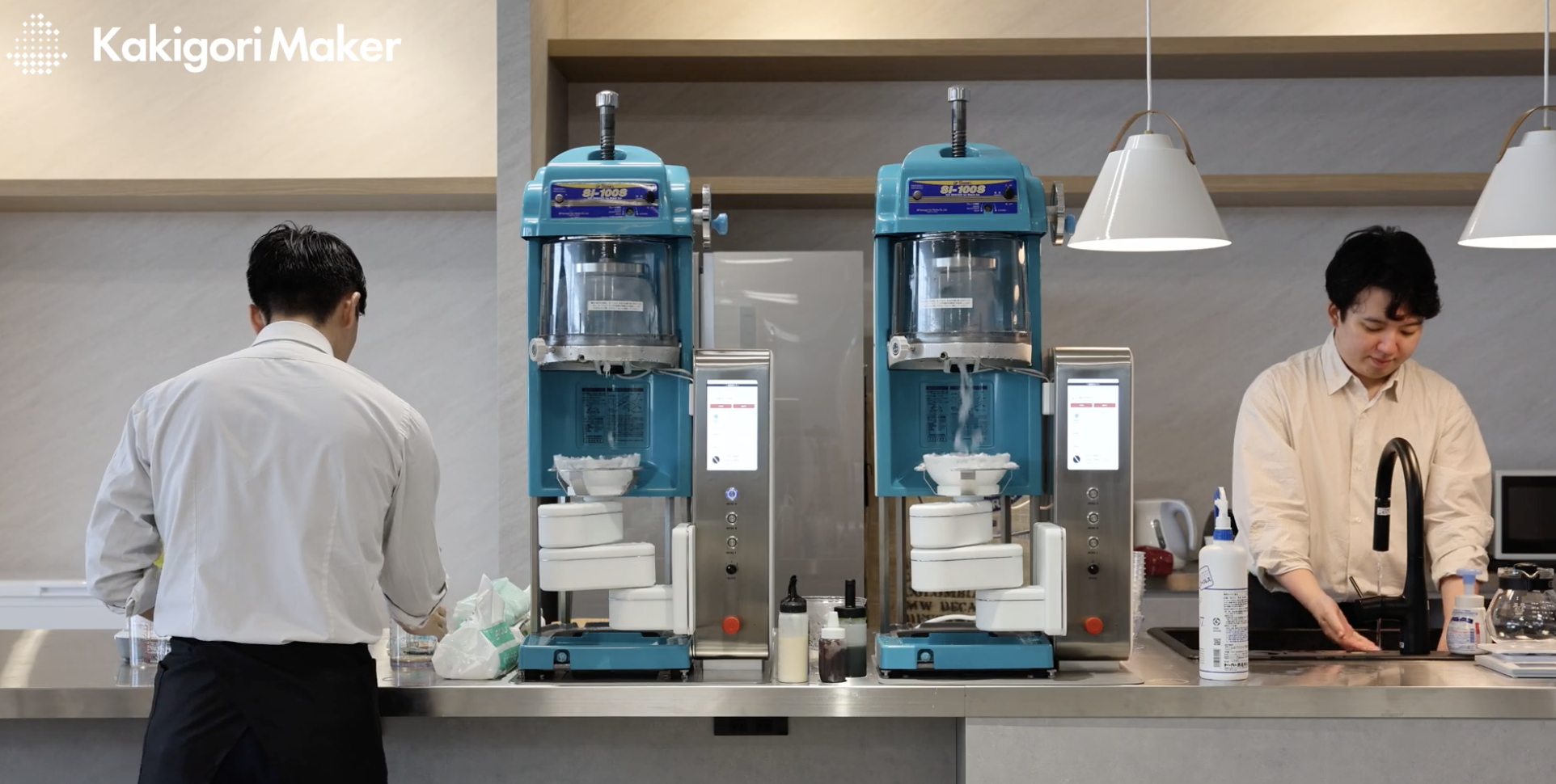 「Kakigori Maker」は、氷を削り、お皿にキレイに盛ってくれる。調理中に人の手を必要としないため、業務の効率化につながるという。