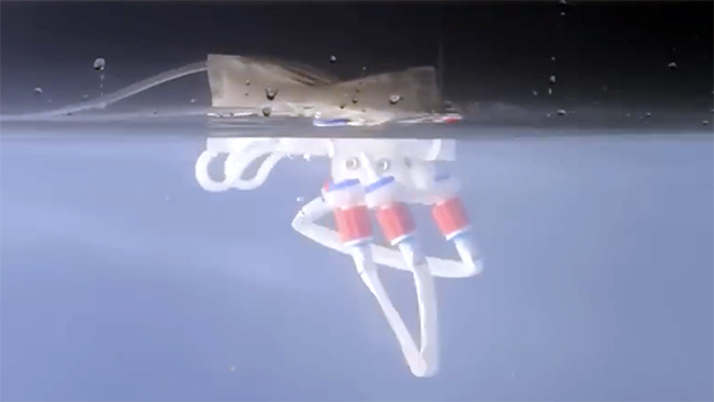 このロボットはコンピューターもセンサーも搭載せず、空気を送るだけで自律移動するという。