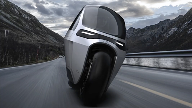 「Lit Motors AEV」は、ジャイロ技術によって高い安定性を実現し、45°まで傾いて走行可能。横から衝撃を受けても倒れにくいという。