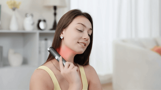 「HOOTUU」は、ハンディタイプの近赤外線照射デバイス。コードレス設計&わずか200gの軽量ボディで、自宅でも外出先でも好きなときにリラックスをサポートする。