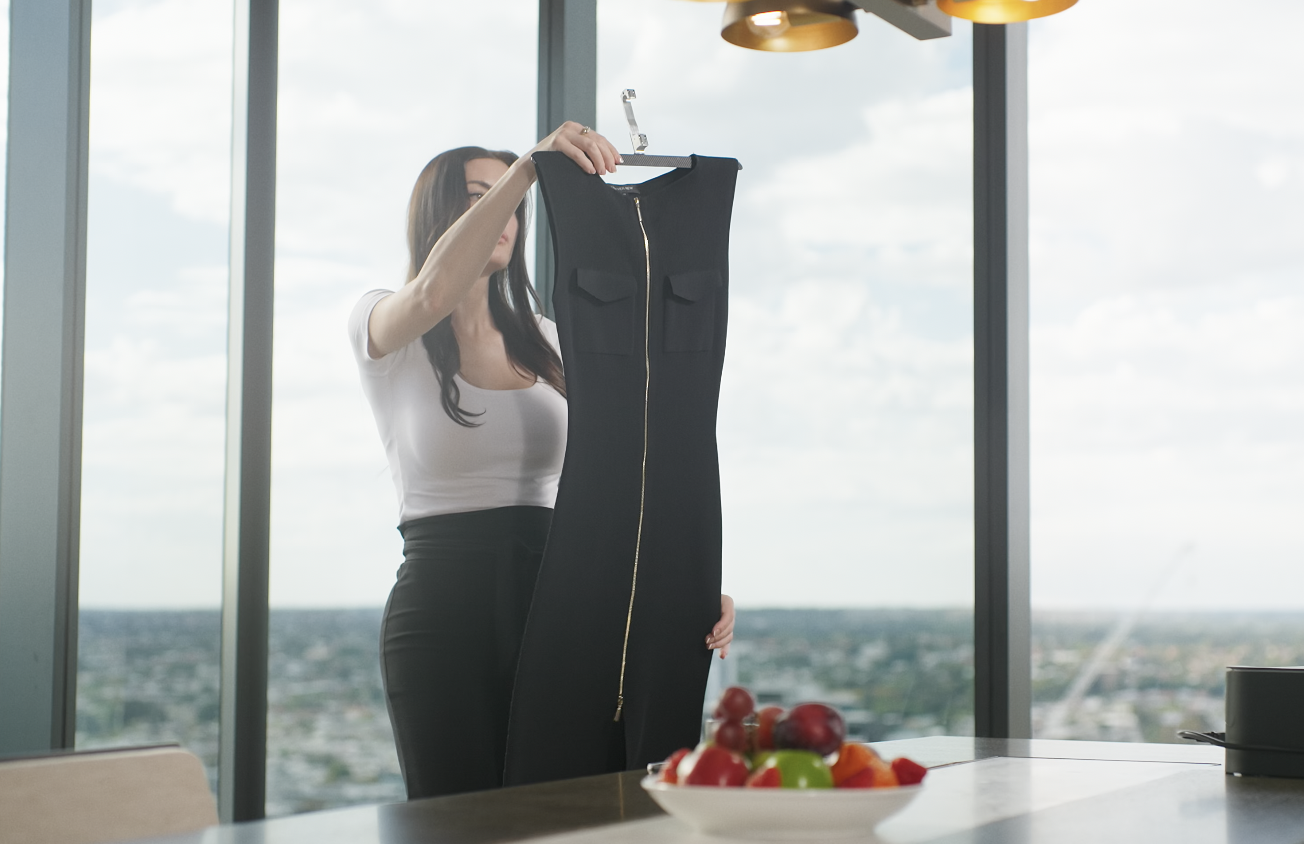 「Einsen」は、服をハンガーにかけて差し込むだけで、スチームとプレスを自動で行ってくれる全自動アイロンマシン。