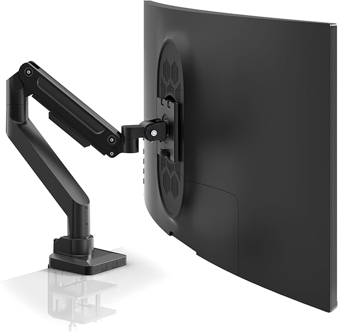 • クリックしてフルビューを表示する ACCURTEK モニターアーム 49インチ対応 耐荷重20kg ガススプリング式 5軸調整 ウルトラワイドモニター対応 VESA規格(75x75/100x100) クランプ/グロメット式 ブラック