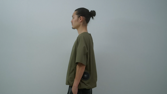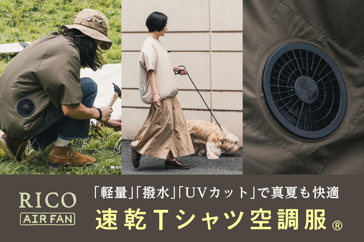 「RICO AIR FAN」は、いわゆる空調服。普段着に使えるTシャツタイプで、日常に溶け込むデザイン。ファッション性と機能性を兼ね備えたプロダクトだ。