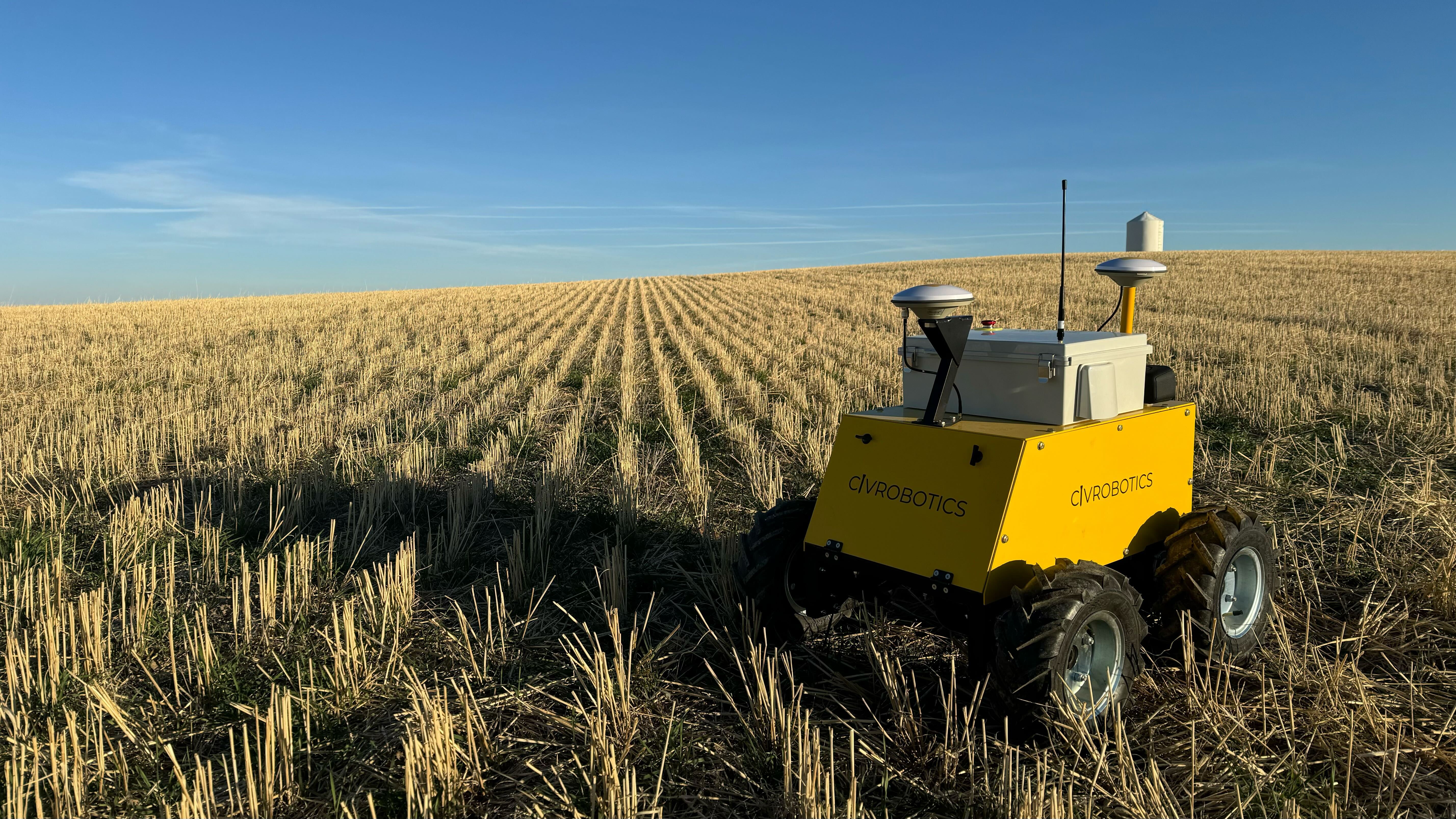 「CivDots」は、地形測量用のロボット。建設現場にマーキング用の塗料を噴射し、標示された点に作業員が杭打ちを行っていくのが作業の流れ。上位モデルはレーザー照射で標示する。調査時間の短縮や精度向上などが期待されている。