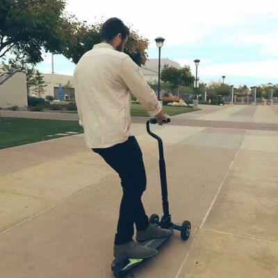 InMotion USA社が開発した、キックボードとスケートボードが合体したようなデザインの「Scooterboard」。前輪車軸が独自のものになっており、類似のボードよりもデッキを大きく傾けられるユニークなライディングを楽しめる。