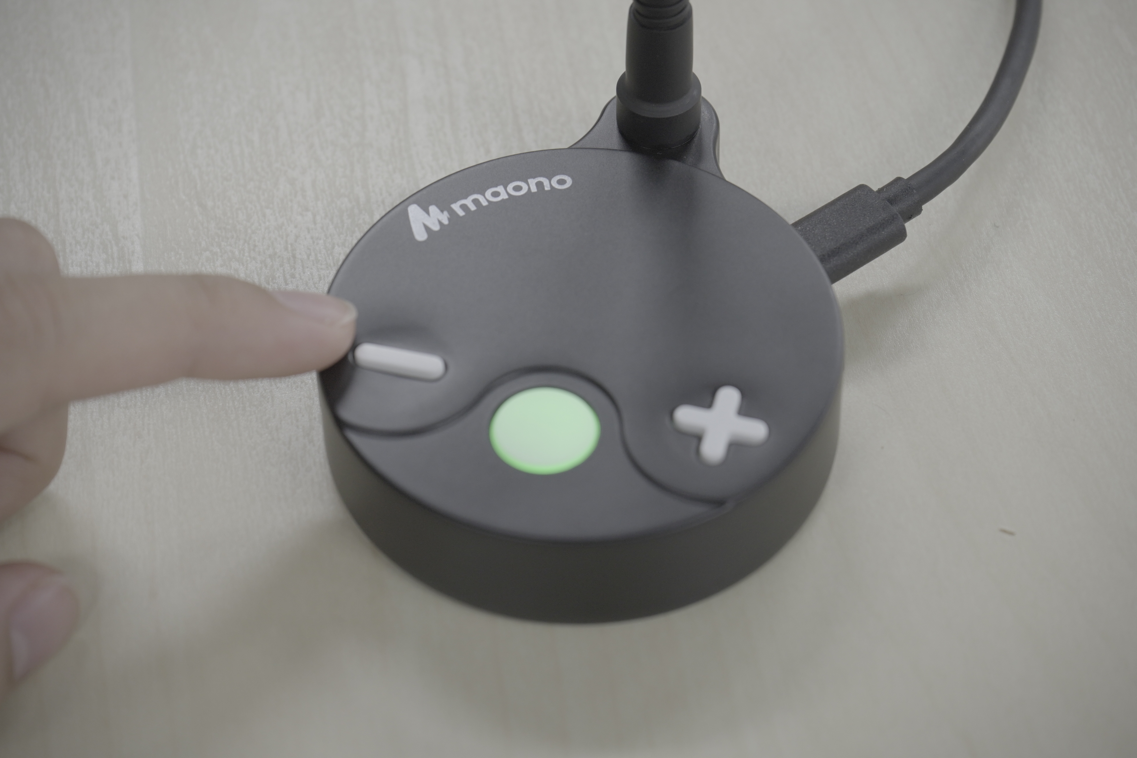 真ん中の丸いボタンではマイクをミュートにすることも可能です。タッチ式なのでボタンの操作音がせず、色によって一目でミュートになっているかわかります。